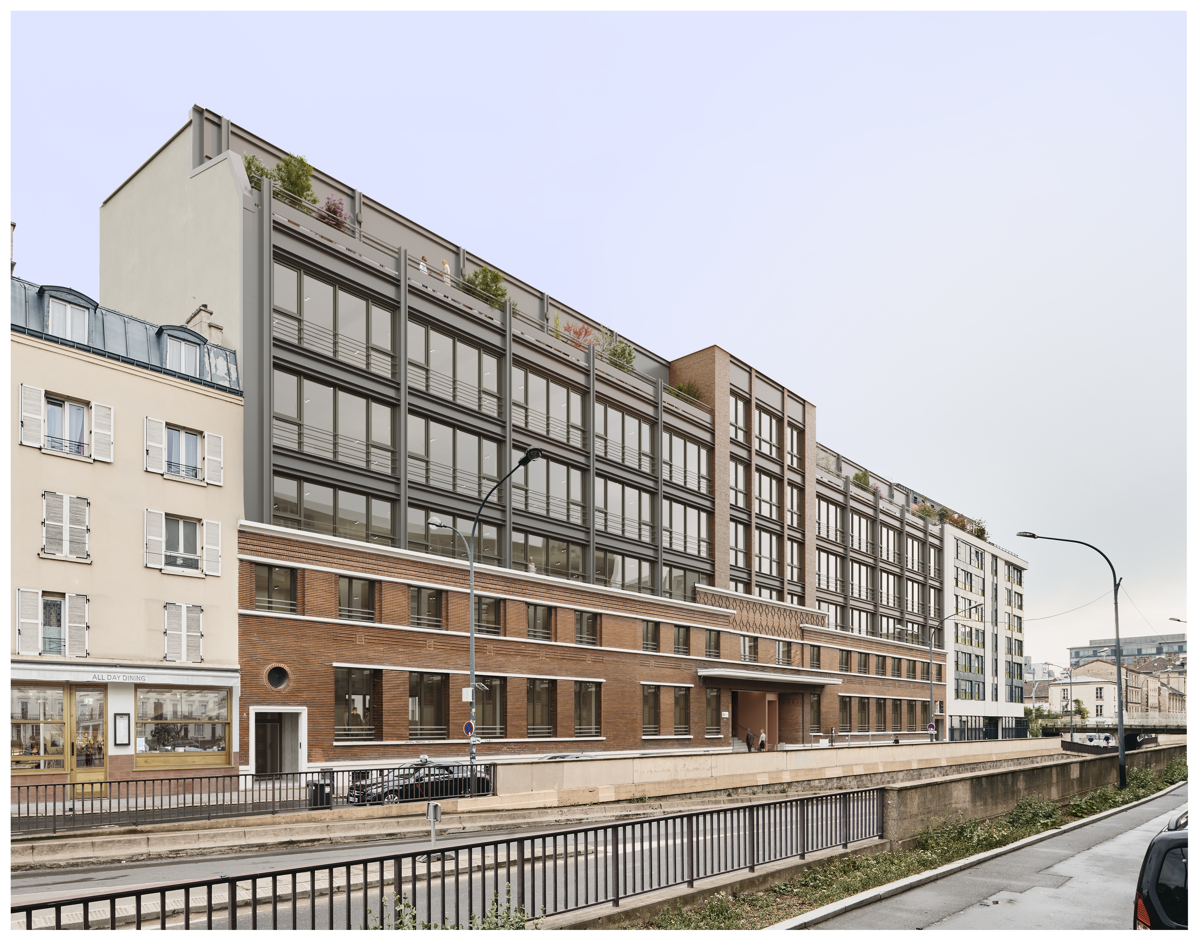 Designed by B&B Architecture, La Distillerie plans to retain the imposing historic red brick façade on Boulevard Victor Hugo which is typical of 1930s industrial buildings. The property intends to provide generous floor plates exceeding 2,000 square metres, a double height lobby which comprises two buildings connected by a garden level devoted to numerous amenities including concierge services, a fitness room, restaurant space, a business center and an auditorium. The campus aims to offer its occupants 1,500 square metres of green space and terraces, including an 800 square metre rooftop shielded from the hustle and bustle of the city, four courtyards, a garden, capacity for 1,300 workstations, 100 parking spaces and bicycle racks.