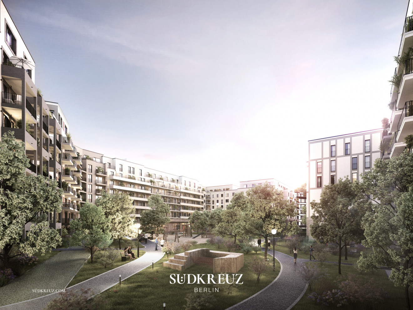 The quarter is also ideally connected to the A100 motorway, the Südkreuz railway station for local and long-distance travel and the future BER airport. The Berlin city center can be reached by public transport within minutes. In addition, a cycle path to Berlin Mitte along the S-Bahn line 1 is being planned. The city quarter offers a unique urban quality of life and is surrounded by nature reserves. The future tenants will enjoy an aesthetic concept, especially due to the variations in the façade elements of the individual buildings.