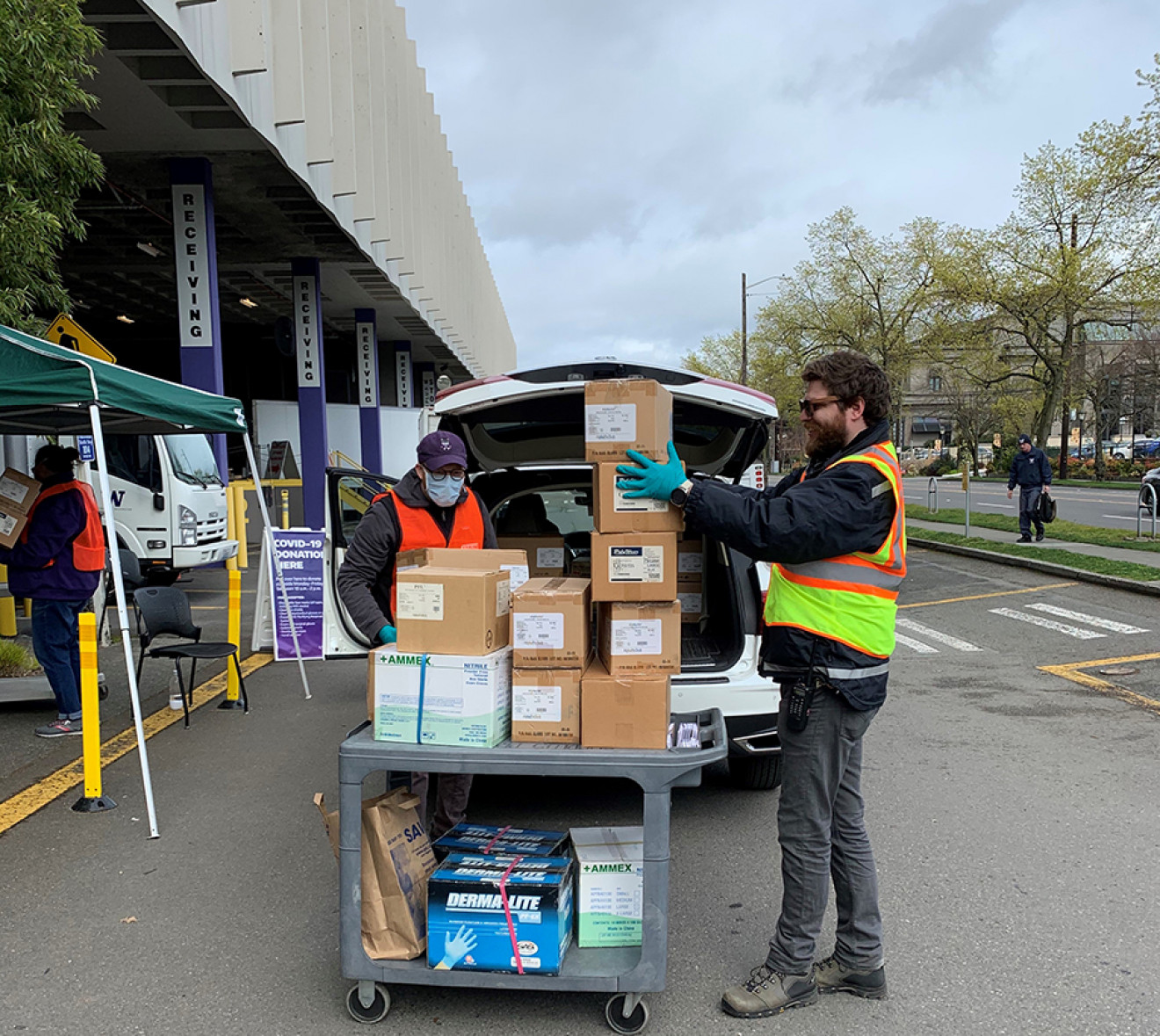 Following an inventory of the various managers’ current PPE stock, they computed the excess at some Hines-managed properties that could be donated without putting operations at risk, based on guidance from Corporate Operations and Engineering (COES). With the approvals of each property owner (State Street, PIMCO, Goldman Sachs, Heitman and LaSalle), the West Region worked tirelessly to gather and donate over 83,000 PPE items. This included 43,000 gloves, 35,000 masks (2,300 N95), and 5,000 gowns.