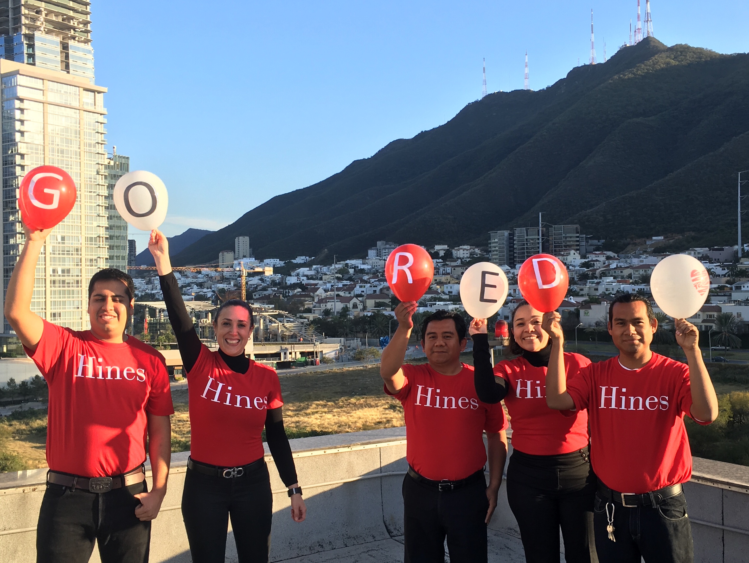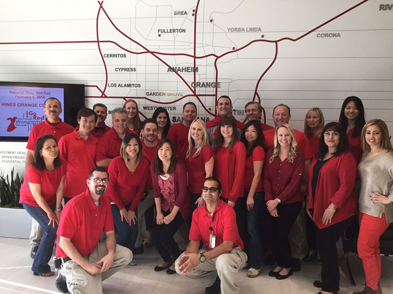 Hines offices in the U.S. and around the world show their colors in support of a great cause, GO RED FOR WOMEN. The campaign is designed to raise awareness of heart disease, the number-one killer of women and seeks to build healthier lives, free of cardiovascular diseases and stroke. In support of the mission, Hines encouraged both male and female employees to wear red to the office Friday, February 5, on National Wear Red Day®. For more information about what you can do to take charge of your health, go to GoRedForWomen.org.