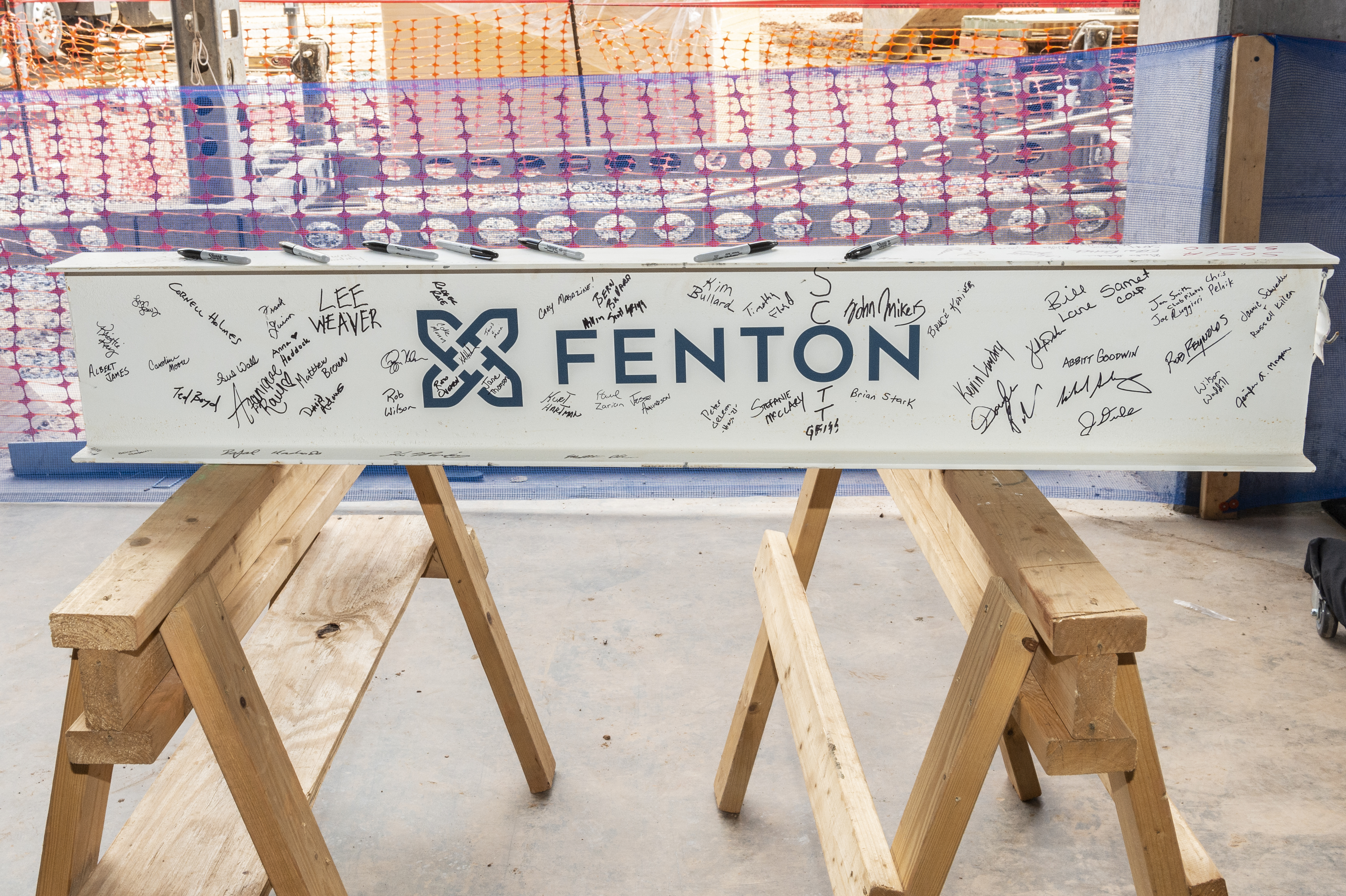 Speakers at the topping-out event included Harold Weinbrecht, Mayor of Cary, Paul Shultz, director at Von Kekel Aveda Lifestyle Salon Spa, and Kurt Hartman, senior managing director at Hines. Following the ceremony, guests signed the final I-beam, which will be placed in a building adjacent to Fenton Square.