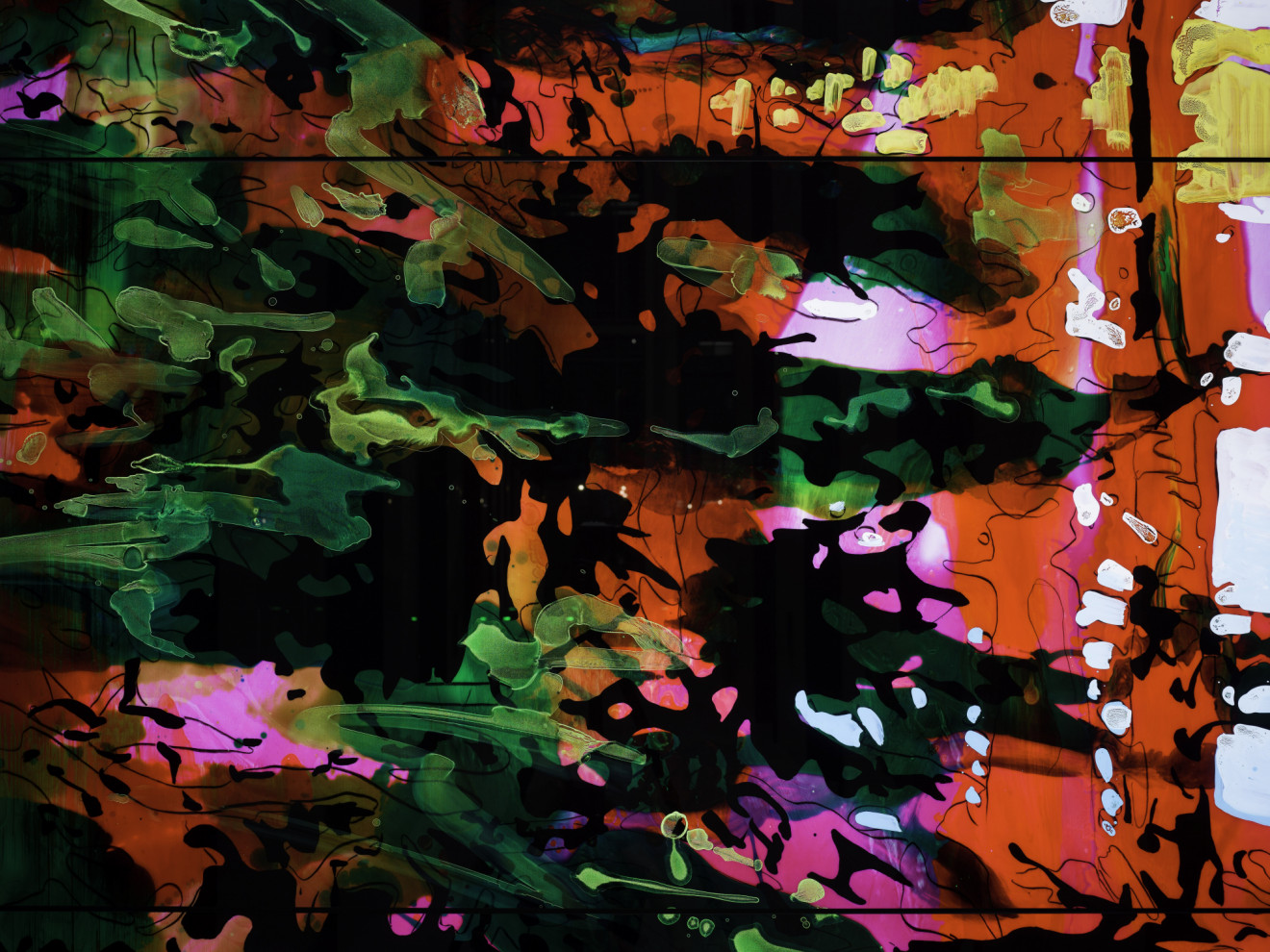 After experimenting across media, sizes, scales, and collaborating with commercial photographers and printers, Driscoll came up with a technique that achieved the crisp colors, detail and immersive experience he was after. He painted the scenes onto large plastic panels with urethane tinged with oil paints. This was followed by a month-long digitization process: taking close-up images of every inch of the artwork and then stitching them together to create one incredibly large file. The final images were then printed onto extra clear (low iron) glass using a large format UV inkjet printer with extremely high resolution (up to 1,500 dpi). The glass was then laminated onto a second piece of glass, sandwiching the image between the two glass pieces. A hoist was used to lift the glass sections (6 lbs. per ftÂČ) into place and then backlit with LEDs.