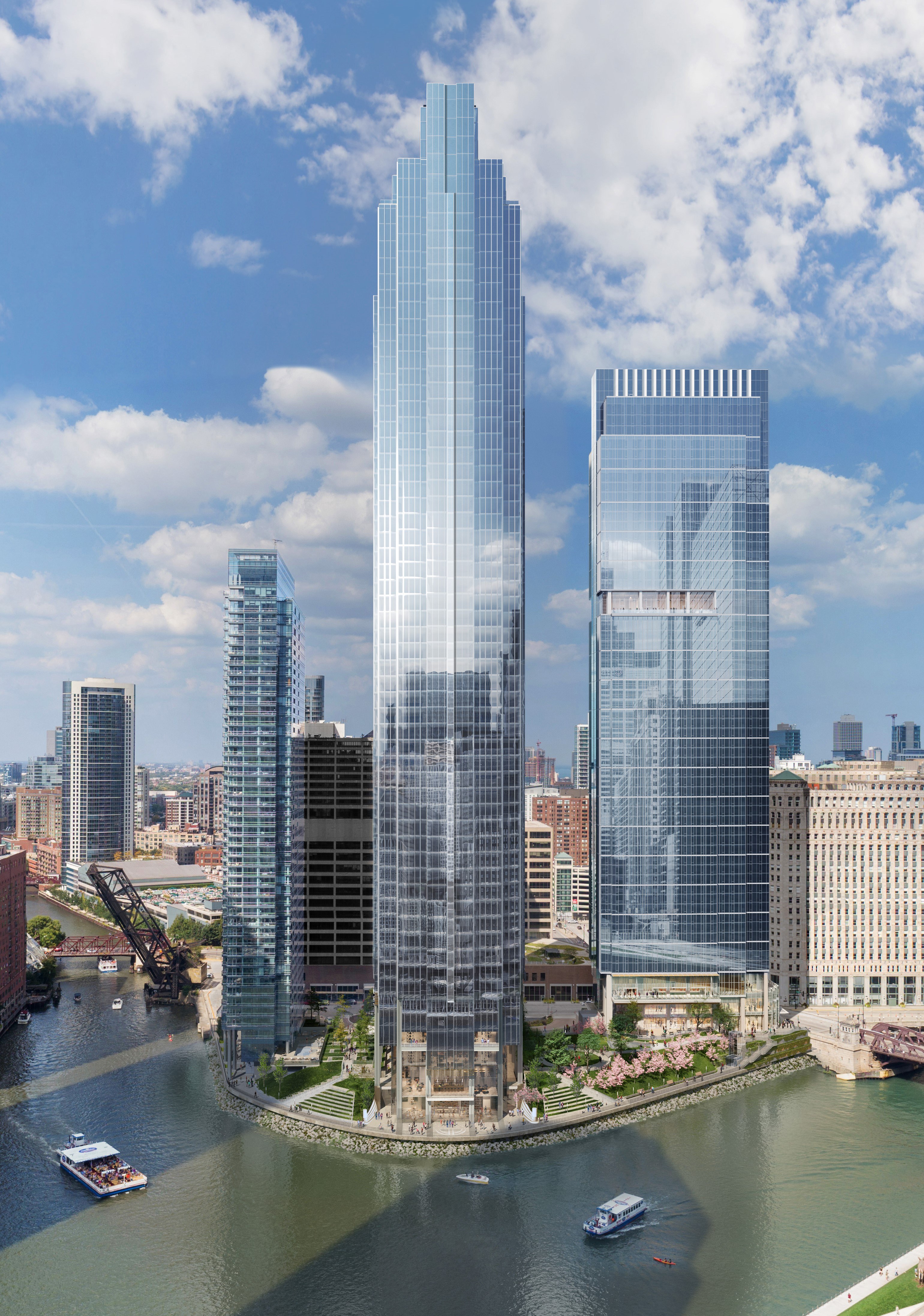 Salesforce Tower Chicago is the third phase of the Wolf Point master plan—a three-phase development designed by Pelli Clarke Pelli—located on one of the last remaining riverfront sites in Downtown Chicago. Hines is developing Salesforce Tower Chicago in partnership with longtime landowner, the Joseph P. Kennedy Family.