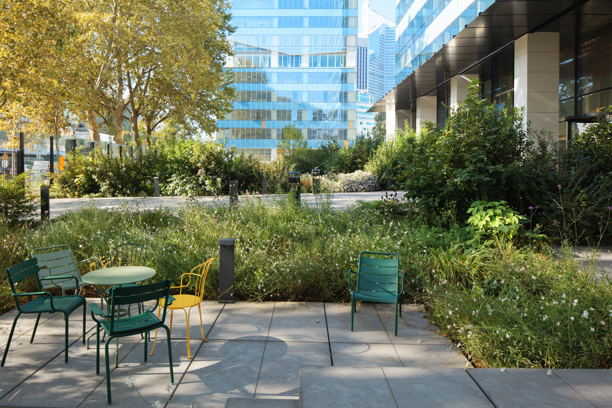 The workstation building is located on the banks of the River Seine, close to Paris La Défense, in Courbevoie. The property spans c.41,000-square-metres with 3,500 square meters of high-quality amenities including: a 200-seat public auditorium, a lounge, 3 restaurants, 2 wellbeing areas, a 600 square meter fitness center, 700 car parking spaces, 100 bicycle spaces and concierge services. In addition, Workstation has 1,500 square meters of garden and a 350 square meter roof terrace.